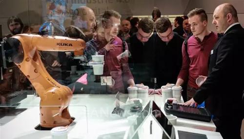 德國機器人制造商庫卡公司在本屆展會上通過一個名為“咖啡4.0”的應(yīng)用,解釋了其對“工業(yè)4.0”實踐應(yīng)用的設(shè)想。顧客在定制咖啡前,先領(lǐng)取一個帶有二維碼的咖啡杯。然后,通過智能手機“掃一掃”,顧客便可以在手機上定制自己喜愛的咖啡種類,以及牛奶和糖的用量。