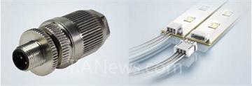 圖片說(shuō)明1:今年的漢諾威工業(yè)博覽會(huì),浩亭展示了M12電源L-編碼產(chǎn)品(左)和LED燈應(yīng)用的har-flexicon?產(chǎn)品(白色)。