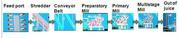 進料口 切碎機 傳輸帶 預(yù)碾碎 初始碾碎 多級碾碎 出汁