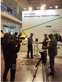 在此次東歐地區(qū)影響力極大的行業(yè)展會上,波蘭國家電視臺(TVP)對光伏科技副總經(jīng)理吳建峰先生以及歐洲區(qū)銷售總監(jiān)徐承志先生進(jìn)行了采訪,訪問中,吳總以及徐總監(jiān)對英威騰光伏逆變器的特點(diǎn),BPD水泵解決方案以及光伏互聯(lián)網(wǎng)監(jiān)控系統(tǒng)進(jìn)行了詳盡的介紹,以及發(fā)布最新產(chǎn)品太陽庫電池箱系列。同時,波蘭國家電視臺采訪記者以及專業(yè)觀眾也現(xiàn)場體驗(yàn)了iMars Phoneexpert光伏監(jiān)控系統(tǒng):“穩(wěn)定可靠,應(yīng)用互聯(lián)網(wǎng)傳輸實(shí)時數(shù)據(jù)到監(jiān)控服務(wù)網(wǎng)絡(luò),即保障了機(jī)器穩(wěn)定運(yùn)行,又做到了真正從用戶體驗(yàn)出發(fā)!”記者并對此光伏物聯(lián)網(wǎng)監(jiān)控系統(tǒng)的理念以及運(yùn)行狀態(tài)表示了極大贊譽(yù)。