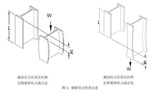 實(shí)施項(xiàng)目的料倉屬于典型的鋼制料倉,容量 700T 左右。由于支撐腿為碳鋼材質(zhì),在加載和卸載物料時(shí)支撐腿會(huì)發(fā)生彈性形變,這些形變量和加載的重量成正比。只要檢測(cè)出這些微小的形變,就可以了解到料倉里面的物料重量。