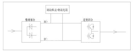 此方式是在直流母線兩端加裝制動(dòng)單元和制動(dòng)電阻,當(dāng)直流母線電壓達(dá)到一定值時(shí),通過電阻消耗掉;這種方式可較方便實(shí)現(xiàn),以多耗電量為代價(jià),不能把下降過程電動(dòng)機(jī)發(fā)電能量回饋至電網(wǎng),同時(shí)由于電阻消耗會(huì)產(chǎn)生大幅熱量,影響整個(gè)控制柜的環(huán)境;這種方式下,磕頭機(jī)所表現(xiàn)出的會(huì)整體功率因素偏低,對(duì)電網(wǎng)質(zhì)量影響較大;