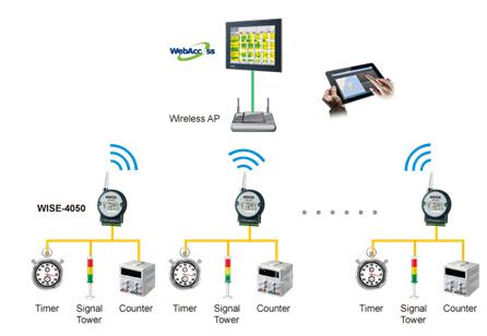 整套新方案中,WISE-4050扮演了一款功能豐富的無線模塊角色,其附有RTC時間戳的記錄功能可精確地處理逾10,000筆的取樣數(shù)據(jù);內置閃存可在斷網(wǎng)時儲存臨時數(shù)據(jù),待網(wǎng)絡恢復正常后再繼續(xù)上傳,因此無需擔心數(shù)據(jù)丟失;計數(shù)器功能則對產(chǎn)線中的在制品進行數(shù)量統(tǒng)計,用戶亦可利用軟件開發(fā)計算時間差,由此獲得產(chǎn)線制造效率;此外,其支持多種通訊協(xié)議(包括Modbus/TCP、TCP/IP、UDP、DHCP、HTTP等)與RESTful Web API標準接口使該模塊所采集的數(shù)據(jù)輕松快捷的提供給其他軟件或系統(tǒng)使用;緊湊型(80 x 148 x 25 mm)設計既節(jié)省空間使其無需網(wǎng)線即可傳送數(shù)據(jù),其所提供的導軌、壁掛等多種安裝方式亦讓擁擠與復雜的工廠環(huán)境均可靈活安裝。
