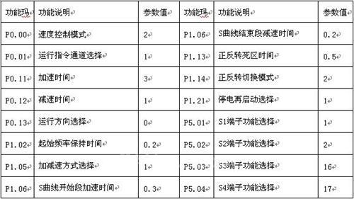 4.2 變頻器參數(shù)設(shè)置:Goodrive200A變頻器部分關(guān)鍵參數(shù)見表1。