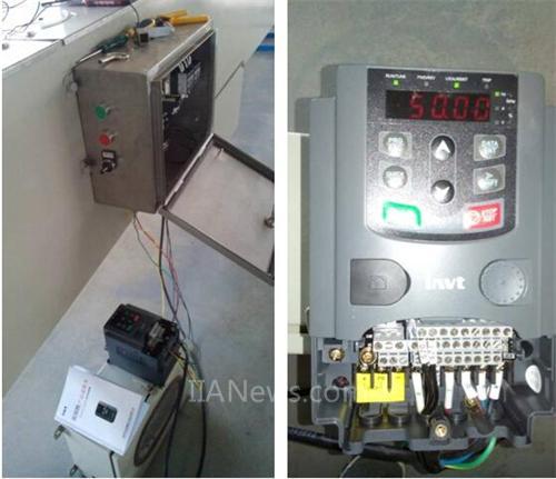圖 9 使用英威騰變頻器控制的調(diào)試用臨時控制盒接線照片