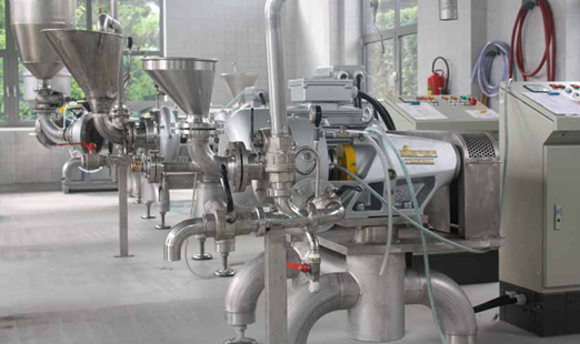 Trigonal?膠磨機的工作原理比較簡單:機器中充入粗大顆粒及相應(yīng)的液體。膠磨機內(nèi)由多達(dá)四個同軸轉(zhuǎn)子和定子環(huán)組成,其上分布著剪切齒和徑向槽及/或孔,它們將充入物及其混合物磨碎。它們參數(shù)非常驚人:轉(zhuǎn)子環(huán)的轉(zhuǎn)速達(dá)4,500 rpm。最大型的Trigonal? SM-D3膠磨機每小時的加工量達(dá)250噸。