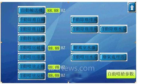 自動(dòng)畫面的功能選擇,同手動(dòng)相同。只有在按下啟動(dòng)按鈕時(shí)才相應(yīng)參數(shù)才會動(dòng)作。整機(jī)的速度在1米到8米之間可選。