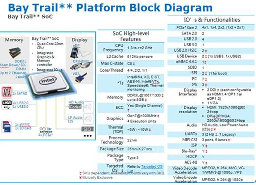 Intel? Atom? E3800該片上系統(tǒng)(SoC)基于Silvermont微體系架構(gòu)并采用英特爾業(yè)界領(lǐng)先的22納米工藝技術(shù)制造。E3800系列SoC提供出色的計算、圖形和媒體性能,并能在更廣的熱條件下運(yùn)行。該產(chǎn)品系列包括:高I/O連接性、集成內(nèi)存控制器、糾錯碼(ECC)和內(nèi)置安全功能,其TDP范圍為5W到10W。