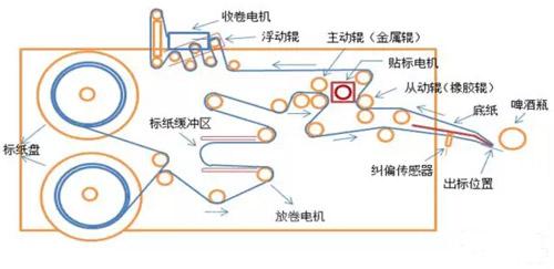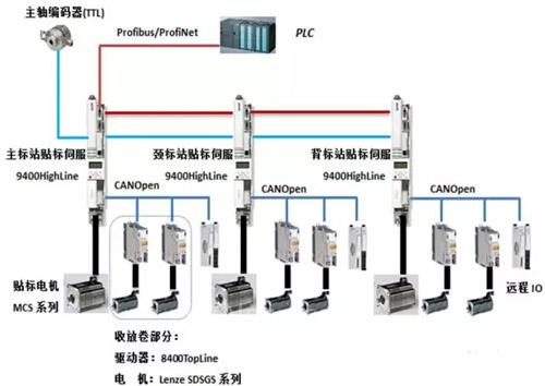 不干膠標(biāo)簽長(zhǎng)期以來(lái)在飲料、日化、醫(yī)藥和電子等諸多行業(yè)廣泛使用,其清亮透明的塑料薄膜為用戶帶來(lái)了一種“無(wú)標(biāo)簽”的視覺(jué)沖擊,在實(shí)現(xiàn)高端大氣的同時(shí),其耐濕性及物理性能均優(yōu)于傳統(tǒng)的紙制標(biāo)簽,貼在瓶身還能增加玻璃瓶的防碰撞能力,目前一些高端的啤酒以及醫(yī)藥瓶均采用這種高檔的水晶標(biāo),市場(chǎng)需求日趨旺盛,與傳統(tǒng)的標(biāo)貼相比,具有不用刷膠、不用漿糊、不用蘸水、無(wú)污染、節(jié)省貼標(biāo)時(shí)間等優(yōu)點(diǎn),應(yīng)用范圍廣,方便快捷。但由于其材質(zhì)的特殊性,對(duì)貼標(biāo)的設(shè)備要求很高,既要保證貼標(biāo)的效率,又要保證貼標(biāo)的質(zhì)量,本文將詳細(xì)介紹Lenze 9400HighLine智能型伺服控制器在高速不干膠貼標(biāo)機(jī)上的應(yīng)用。
