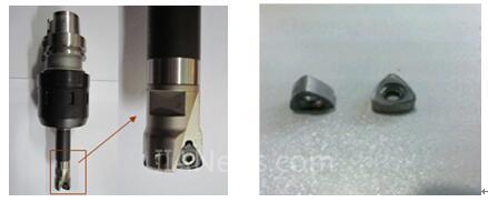 實際加工采用了WALTER機(jī)夾式可轉(zhuǎn)位大進(jìn)給刀片,刀具直徑為25mm,刀桿牌號為F4030.T22.025.Z02.01,刀片牌號分別為P23696-1.0 WSM35S、P23696-1.0 WSP45S,該系列刀具前角為16°,后角為14°。