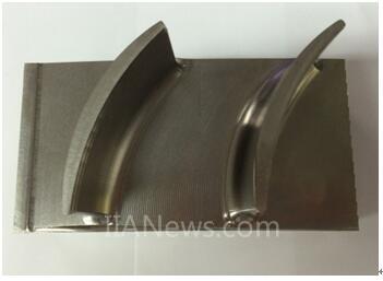 根據(jù)所制定的加工策略以及刀具的切削參數(shù),最終加工出整體葉盤基準(zhǔn)件(共兩塊)驗證不同刀具的切削性能,整體葉盤基準(zhǔn)件粗加工結(jié)果如圖6所示。