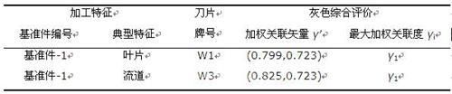 以上為精加工評價指標(biāo)表面粗糙度、尺寸誤差、后刀面磨損的測量結(jié)果,各指標(biāo)的測量結(jié)果是加工完葉片和流道特征后的測量結(jié)果。根據(jù)于此,運用所構(gòu)建的精加工模型對加工刀具進(jìn)行灰色綜合評價,評價結(jié)果如下所示。