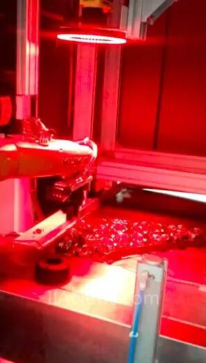 ▲ 相機(jī)固定安裝,滿足較大視野,引導(dǎo)機(jī)器人抓取得分最高工件,之后再拍照進(jìn)行抓取。