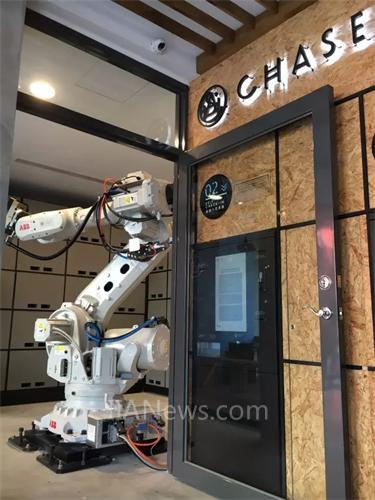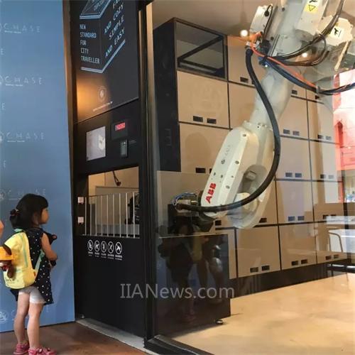 為了實現(xiàn)這樣的無人自助式運營模式,鵲絲與ABB等公司合作,導入兼具智能化與自動化的旅店管理系統(tǒng)。通過“物聯(lián)網(wǎng)+”技術(shù)將現(xiàn)場設(shè)備訊息上傳至云端平臺,從入住、退房、收發(fā)房卡、定制化住房需求、云端對講、安全監(jiān)控到以機器人為主的行李寄存系統(tǒng),都在兩公里以外的總部內(nèi)一覽無遺。并且考慮到旅客的不同類型,為了最大化利用空間,鵲絲設(shè)有29寸和25寸兩種大小、共56個行李柜,全部使用可負重200公斤的ABB機器人進行放置。
