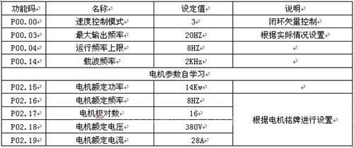 變頻器部分關(guān)鍵參數(shù)見表2。