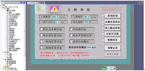 2015年3月國(guó)家藥監(jiān)局即將實(shí)施新的透析用水標(biāo)準(zhǔn)(YY0572-2015),新標(biāo)準(zhǔn)對(duì)水處理設(shè)備提出了更高的要求,為了響應(yīng)國(guó)家要求同時(shí)適應(yīng)市場(chǎng)發(fā)展,公司決定對(duì)整套系統(tǒng)升級(jí)改造??紤]到醫(yī)療設(shè)備對(duì)系統(tǒng)穩(wěn)定性的要求,決定控制系統(tǒng)改用西門(mén)子控制系統(tǒng)。