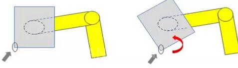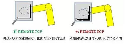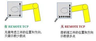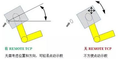 有無REMOTE TCP,最直觀的體現在旋轉工件方面,如示意圖所示: