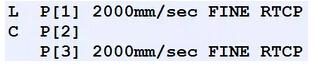 REMOTE TCP的設定較為容易,設定的方法與用戶坐標系類似,使用時只需要在TP程序中添加RTCP指令就可以了,如下圖所示: