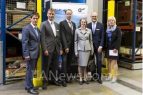 圖1:Fertigungstechnik NORD廠長(zhǎng)Steffen Timm(左)和諾德傳動(dòng)集團(tuán)董事總經(jīng)理JuttaHumbert(左四)熱情接待了貴賓(從左至右):德國(guó)加德布施市市長(zhǎng)Ulrich Howest,梅克倫堡-前波莫瑞州國(guó)務(wù)秘書(shū)和負(fù)責(zé)人Dr. Christian Frenzel,NORDMETALL金屬和電子工業(yè)聯(lián)合會(huì)Dr. Nico Fickinger,以及西北梅克倫堡區(qū)管理局負(fù)責(zé)人Kerstin Weiss。