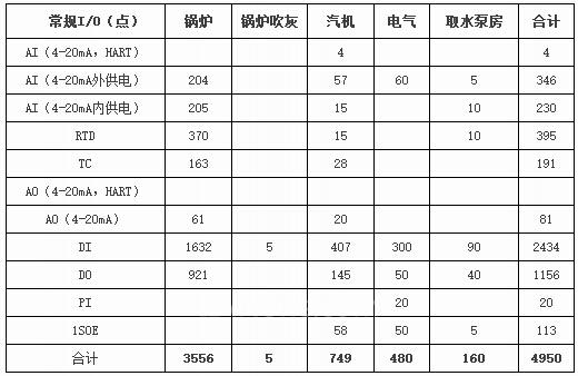 表2單元機(jī)組遠(yuǎn)程I/O(RR)數(shù)量(一臺(tái)機(jī)組)
