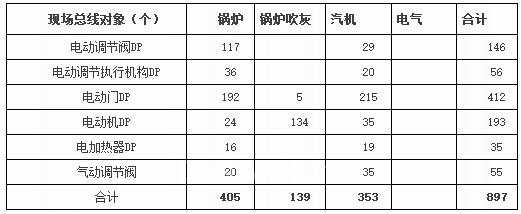 表4單元機(jī)組現(xiàn)場(chǎng)總線對(duì)象數(shù)量(一臺(tái)機(jī)組)