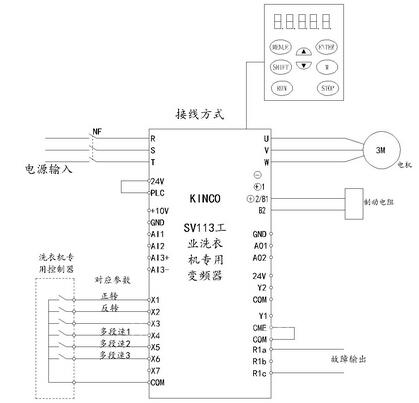 Kinco SV113系列工業(yè)洗衣機(jī)專用變頻器具有啟動力矩大、運(yùn)行平穩(wěn)、故障保護(hù)措施完善等功能。該變頻器采用專用軟件,出廠默認(rèn)現(xiàn)場應(yīng)用參數(shù),還采用獨(dú)特的寬電壓設(shè)計(jì)360VAC-460VAV,啟動轉(zhuǎn)矩在0.5HZ下能達(dá)到150%,自動轉(zhuǎn)矩提升功能能實(shí)現(xiàn)V/F控制方式下低頻大輸出轉(zhuǎn)矩控制,16段速度能夠滿足各種場合的多段速控制方式,調(diào)速范圍寬,加減速過程不失速,全程轉(zhuǎn)速穩(wěn)定。具有特殊的V/F曲線自動提升功能,可根據(jù)洗滌狀況調(diào)整V/F曲線,使洗衣機(jī)啟動平穩(wěn)。