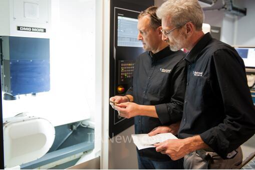 Laurent Savonneau(右),Boutroué公司總經(jīng)理,與站在LASERTEC 45 Shape機床旁的應(yīng)用技術(shù)人員,該機安裝于2015年