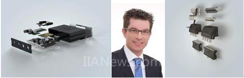 圖片說明:浩亭HARTING MICA(左)與浩亭產品管理總監(jiān)Jan Regtmeier博士(中)。浩亭還將展出全新的Han?34 HPR EasyCon(右)。