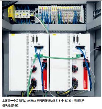 X 和 Y 軸由倍福的 AM80xx 伺服電機(jī)驅(qū)動(dòng)。X 軸用的電機(jī)使用法蘭安裝在軸上,通過連通軸充分利用斜齒輪,并驅(qū)動(dòng)兩根輸送帶。“這樣,我們可以使用一個(gè)垂直安裝在軸上的標(biāo)準(zhǔn)電機(jī)?!盤atric Luthi 接著說道?!斑@些伺服電機(jī)通過單通道伺服驅(qū)動(dòng)器 AX5125 和 AX5118 分別控制,而且我們還利用這一控制技術(shù)支持高速、高動(dòng)態(tài)定位任務(wù)?!盳 和 R 軸由 AM3112 伺服電機(jī)控制,該電機(jī)能夠產(chǎn)生最大轉(zhuǎn)矩,具有高動(dòng)態(tài)和高定位精度的優(yōu)點(diǎn)。它們是專為與緊湊型 EL7201 伺服端子模塊配套使用而設(shè)計(jì)。事實(shí)上,OilPainter 的所有通訊任務(wù)都是使用高速 EtherCAT 工業(yè)以太網(wǎng)協(xié)議完成的??刂破饕?1 毫秒的周期時(shí)間檢查所有軸是否每秒鐘同步運(yùn)行 1000 次。