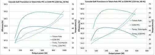 采用GaN還使得圖騰柱(Totem Pole)電路成為可能,較傳統(tǒng)CCM升壓PFC提供更高能效。