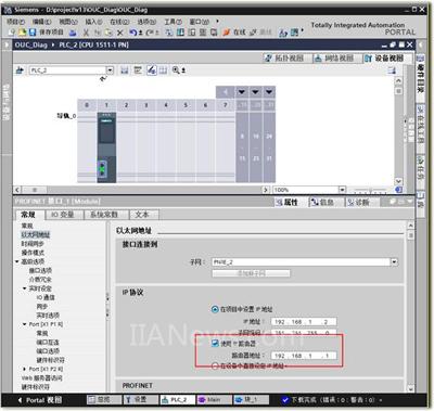 2. PLC的網關設置:在工作區(qū)的設備視圖下雙擊CPU PN 接口可打開位于巡視窗口下的屬性頁,選擇“常規(guī)”下方的“以太網地址”,為以太網接口添加子網PN/IE_2,并設置IP地址,子網掩碼及勾選使用IP路由器,設置路由器地址見圖3所示 。