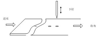 縫紉機(jī)原理如圖1所示,需要將針部分穿過(guò)織物。由于針眼就在尖頭的后面,而不是在針的尾端。針固定在針桿上,針桿由電機(jī)通過(guò)一系列的齒輪和凸輪牽引做上下運(yùn)動(dòng)。當(dāng)針的尖端穿過(guò)織物時(shí),它在一面向另一面拉出一個(gè)小線圈。織物下面的一個(gè)裝置會(huì)抓住這個(gè)線圈,然后將其包住另一根線或者同一根線的另一個(gè)線圈。