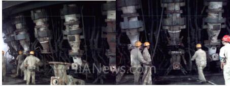 維護(hù)人員正在為高爐送風(fēng)支管進(jìn)行維修