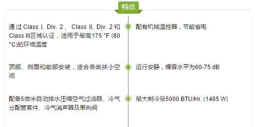 Hoffman Vortex A/C冷卻器于2014年6月17日在濱特爾中國(guó)正式發(fā)布。該系列冷卻器通過Hoffman 銷售渠道,針對(duì)性的應(yīng)用于冷卻機(jī)柜/機(jī)箱內(nèi)敏感的電子電氣元件。由于幾乎沒有運(yùn)動(dòng)部件,Vortex A/C冷卻器提供幾乎無需維護(hù)的可靠的持續(xù)運(yùn)行。Vortex A/C冷卻器會(huì)使得機(jī)柜/機(jī)箱內(nèi)維持一定的正壓,從而保持電子元器件的干燥和清潔。Vortex A/C冷卻器通過內(nèi)置的溫控器控制,使機(jī)柜內(nèi)的溫度穩(wěn)定在一定的范圍內(nèi),從而使得電子元器件保持冷卻和可正常操作。
