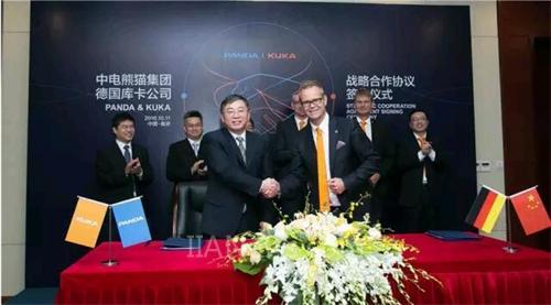 2016年10月11日,全球領(lǐng)先的工業(yè)機(jī)器人制造商KUKA與中電熊貓的合作伙伴簽約儀式于中國(guó)南京成功舉行。庫卡機(jī)器人有限公司CEO Stefan Lampa先生和庫卡機(jī)器人(上海)有限公司銷售總監(jiān)華臻出席了簽約儀式。南京熊貓電子股份有限公司是CEC中國(guó)電子旗下的骨干企業(yè),其母公司熊貓集團(tuán)連續(xù)二十四年位列中國(guó)電子信息百強(qiáng)企業(yè)前列。雙方此次建立戰(zhàn)略協(xié)作,旨在推廣KUKA在中電集團(tuán)下屬的各個(gè)電子制造公司的機(jī)器人的應(yīng)用,同時(shí)推動(dòng)國(guó)有液晶玻璃行業(yè)的自動(dòng)化。