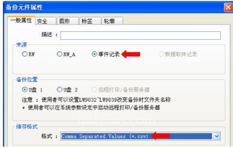 1、EB8000 的“備份”控件,可將“事件記錄”直接保存為*.csv 格式文件;