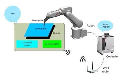 其中便捷機(jī)器人調(diào)試單元能夠緊密聯(lián)結(jié)機(jī)器人與人,實(shí)現(xiàn)機(jī)器人應(yīng)用的工程效率與卓越。應(yīng)用移動(dòng)設(shè)備(比如平板,智能手機(jī))中的觸摸屏能夠作為位置傳感和人機(jī)交互手段來實(shí)現(xiàn)諸如坐標(biāo)系標(biāo)定、路徑編程等復(fù)雜的機(jī)器人調(diào)試任務(wù)。