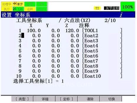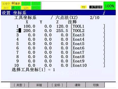 4.按下F2“詳細(xì)”。出現(xiàn)所選的坐標(biāo)系號(hào)碼的工具坐標(biāo)系設(shè)定畫面。