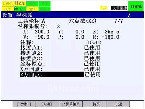 9.對(duì)所有參考點(diǎn)都進(jìn)行示教后,顯示“已使用”。工具坐標(biāo)系即被設(shè)定。