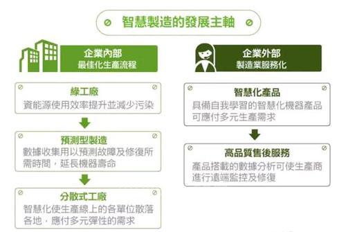 智慧化的生產(chǎn)線從以前的“反應(yīng)式制造”轉(zhuǎn)為主動(dòng)積極的“預(yù)測型制造”,機(jī)器設(shè)備在生產(chǎn)的過程中透過數(shù)據(jù)搜集,能夠預(yù)測故障以及需要修復(fù)的時(shí)間,及時(shí)進(jìn)行維護(hù),減低事故造成的成本。另外,資能源的使用也會(huì)隨著智慧化的操控,降低生產(chǎn)過程中的污染與能源消耗、進(jìn)行有效回收,減輕環(huán)境污染之虞,并能以最小的人力、能源達(dá)成最高生產(chǎn)效率。整個(gè)智慧生產(chǎn)線透過網(wǎng)路進(jìn)行有效連結(jié)之後,除了透過虛實(shí)整合,從過去“集中式”的生產(chǎn)工廠轉(zhuǎn)變?yōu)榉稚⒏鞯氐纳a(chǎn)單位,還能應(yīng)付多元的生產(chǎn)要求,無論小批量、個(gè)性化制造或大量、標(biāo)準(zhǔn)化生產(chǎn)都能達(dá)成。