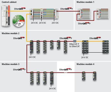 由于 EtherCAT P 布線適用于各種性能等級的自動化組件,單電纜自動化為模塊化設(shè)備和機(jī)器設(shè)計提供了最佳基礎(chǔ)