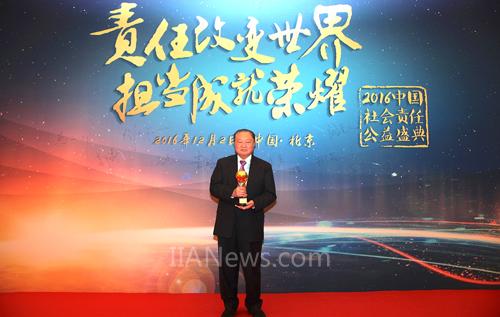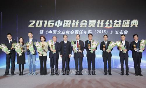 “2016中國社會(huì)責(zé)任公益盛典暨《中國企業(yè)社會(huì)責(zé)任年鑒(2016)》發(fā)布會(huì)” 由新華網(wǎng)聯(lián)合中國社科院經(jīng)濟(jì)學(xué)部企業(yè)社會(huì)責(zé)任研究中心、新華社新聞研究所、新華每日電訊社、經(jīng)濟(jì)參考報(bào)社、參考消息報(bào)社等機(jī)構(gòu)單位共同主辦,旨在推進(jìn)社會(huì)責(zé)任創(chuàng)新建設(shè)、推動(dòng)社會(huì)責(zé)任在中國社會(huì)的發(fā)展。本次活動(dòng)的主題為“責(zé)任改變世界,擔(dān)當(dāng)成就榮耀”,根據(jù)各企業(yè)在2016年履行社會(huì)責(zé)任的綜合表現(xiàn),以及各位企業(yè)家在履行社會(huì)責(zé)任方面所作出的貢獻(xiàn),推選出 “中國社會(huì)責(zé)任杰出企業(yè)獎(jiǎng)”和“中國社會(huì)責(zé)任杰出人物獎(jiǎng)”等十大獎(jiǎng)項(xiàng)。