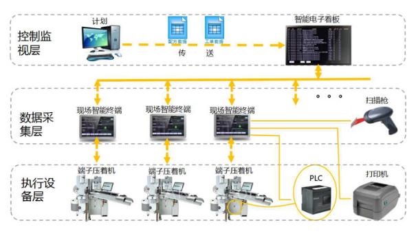 在每臺線束設備安裝Kinco 步科現(xiàn)場智能終端,結合Kinco 步科智能電子看板,構建可生產車間信息透明化解決方案。