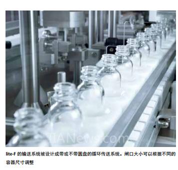 lite-F 機(jī)器主要設(shè)計(jì)用于非消毒或非無菌的灌裝工藝,滿足合同包裝公司和創(chuàng)業(yè)者的性價(jià)比需求,以及小批量生產(chǎn)需求。灌裝機(jī)的輸送系統(tǒng)被設(shè)計(jì)成帶或不帶圓盤的循環(huán)傳送系統(tǒng)。閘口大小可以根據(jù)不同的容器尺寸調(diào)整。lite-F 可以同時(shí)輸送兩個(gè)對(duì)象,即一次可以灌裝兩瓶,每瓶的灌裝量都可以輕松調(diào)整?!叭粢诳焖僭鲩L(zhǎng)的合同包裝領(lǐng)域具有較強(qiáng)競(jìng)爭(zhēng)力,需要具有性能強(qiáng)大、重復(fù)精度高且具有成本優(yōu)勢(shì)的創(chuàng)新技術(shù)。”Stefan Winzinger 解釋說道。“有了 lite-F,在一個(gè)輪班內(nèi)必須處理 10 中不同類型產(chǎn)品的合同包裝供應(yīng)商不需要在設(shè)備上投入大量資金來達(dá)到所需的吞吐量?!盙roninger 改善的業(yè)務(wù)發(fā)展經(jīng)理 Dave Gozlan 說道。