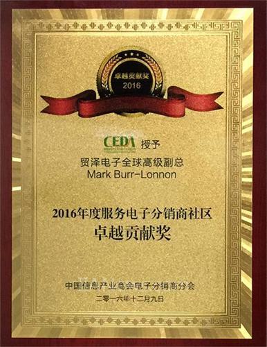 貿(mào)澤電子全球高級(jí)副總Mark Burr-Lonnon先生獲得2016年度服務(wù)電子分銷商社區(qū)卓越貢獻(xiàn)獎(jiǎng)