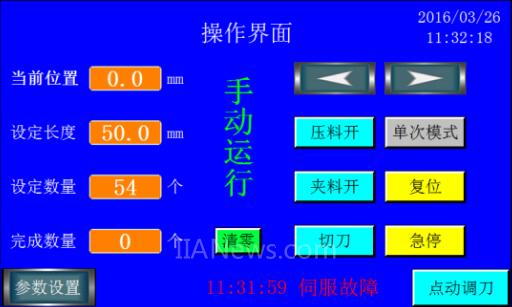 1、操作界面:可以顯示運(yùn)行速度和產(chǎn)量,可以設(shè)置運(yùn)行模式、切料長(zhǎng)度、產(chǎn)量設(shè)置。