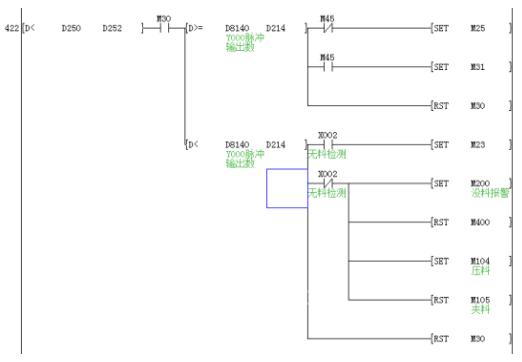 3、在取料過(guò)程中,通過(guò)感應(yīng)器去識(shí)別料是否結(jié)束,判斷結(jié)束后,要處理去夾料末的末端。