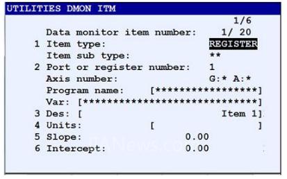監(jiān)控項(xiàng)目類型可以選擇integer、real、I/O、register、axis。本例中選擇了R1寄存器和I/O口的DO信號(hào)進(jìn)行監(jiān)控。