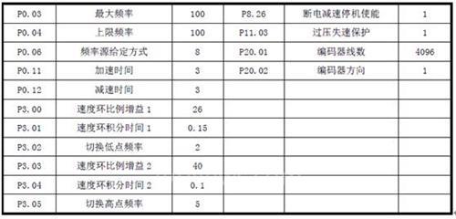 變頻器部分關(guān)鍵參數(shù)見表1。