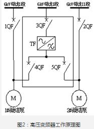 高壓變頻器可以拖動(dòng)A凝結(jié)泵電動(dòng)機(jī)實(shí)現(xiàn)變頻運(yùn)行,也可以通過切換拖動(dòng)B凝結(jié)泵電動(dòng)機(jī)實(shí)現(xiàn)變頻運(yùn)行,但不能同時(shí)拖動(dòng)運(yùn)行。兩側(cè)凝結(jié)泵電動(dòng)機(jī)均具備工頻旁路功能,可實(shí)現(xiàn)任意一臺(tái)電動(dòng)機(jī)的變頻運(yùn)行,另外一臺(tái)處于工頻備用,當(dāng)高壓變頻器故障時(shí),系統(tǒng)可聯(lián)鎖另一臺(tái)工頻電機(jī)運(yùn)行。